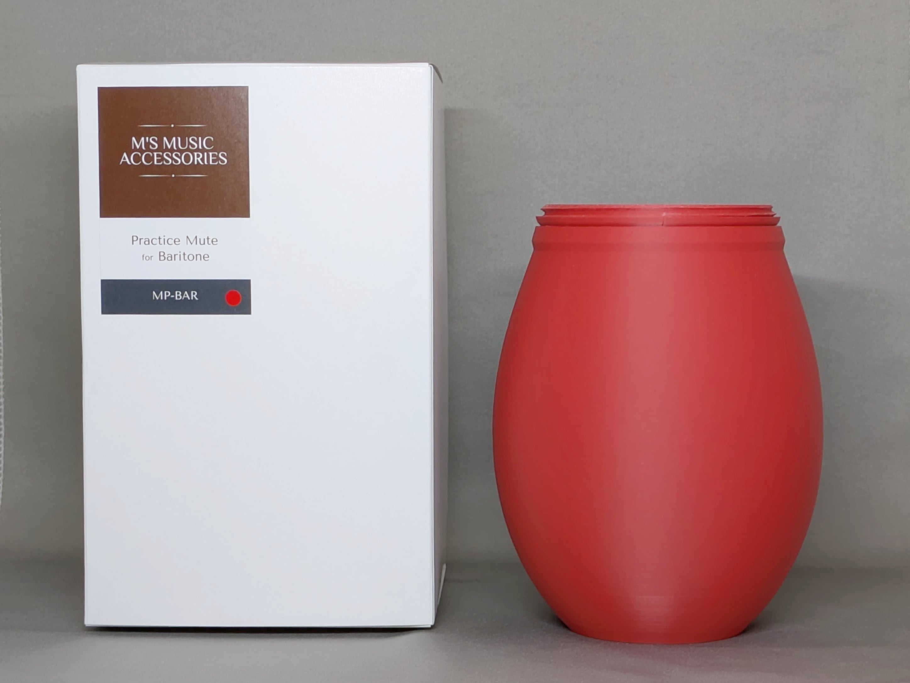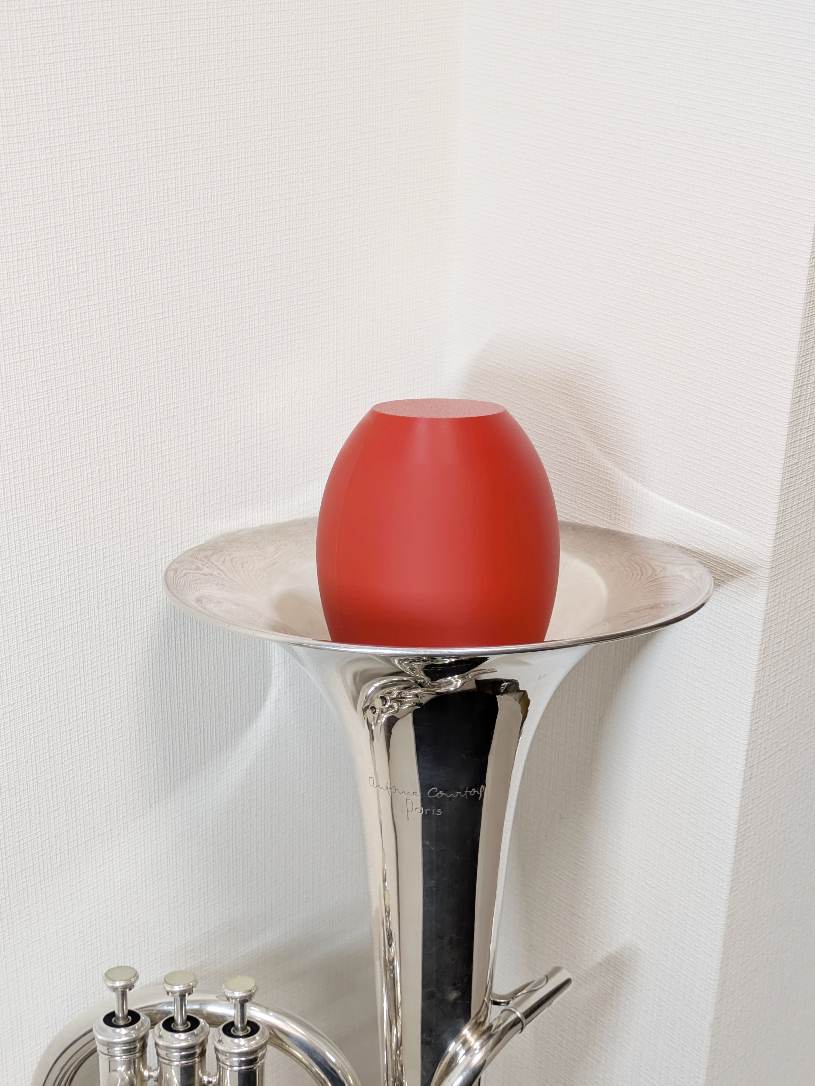 この製品は、「ミュートをつけた状態でも、ミュートなしの状態と同じ様な感覚で吹けるように」という点にこだわり、吹奏感と音程感を追求して開発されました。